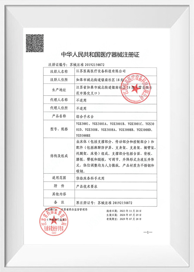 Свидетельство о регистрации электрического операционного стола