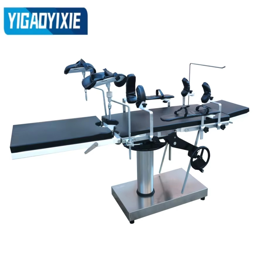 YGS3002A Общий операционный стол — это сложное медицинское устройство, предназначенное для поддержки тела пациента во время операции и широко используемое в различных рутинных операциях. Операционный стол состоит из изголовья, спинки, пояса, бедра и встроенной подставки для ног. Он имеет компактную структуру и может обеспечить всестороннюю поддержку. Платформа поднимается и опускается с помощью системы колес и осей, приводимой в движение большим вращающимся винтом. Операция ручной регулировки проста и стабильна, что обеспечивает нормальное использование даже без питания. Для подъема спинки и поясного моста используется червячный механизм передачи, обеспечивающий точную и плавную регулировку, в то время как изголовье имеет спиральный замок, а подставка для ног управляется храповым механизмом, который удобно и быстро регулируется, чтобы гарантировать, что пациент находится в наилучшем хирургическом положении. Основание и корпус колонны операционного стола изготовлены из нержавеющей стали, которая обладает превосходной устойчивостью к коррозии и окислению, что обеспечивает долговечность и легкость очистки после длительного использования. Общая конструкция ориентирована на безопасность и стабильность, предоставляя врачам стабильную рабочую платформу для обеспечения комфорта и безопасности пациентов.